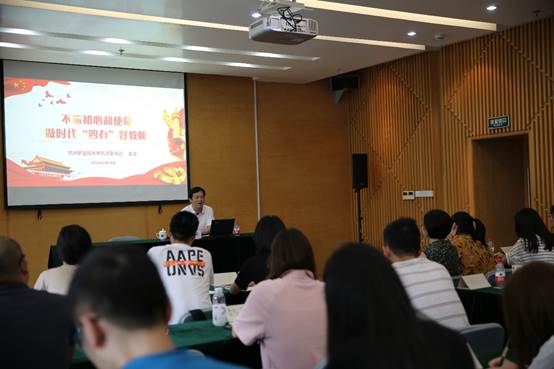 党委书记金波以“不忘初心和使命,做新时代’四有’好教师”为题做了专题讲座。他指出,要加快构建现代职教体系,着力提升人才职教质量,必须加强专业师资队伍建设。他强调,青年教师要抓住职业教育发展契机,打好坚实的专业基础,在教学方面,要重视第一堂课,重视第一门课程,正确处理和应用现代化教学手段,积极参与教学建设。