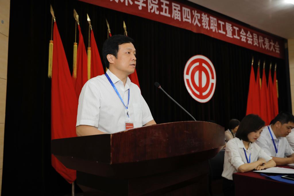 5月31日,杭州职业技术学院第五届教职工暨工会会员代表大会第四次会议在行政楼报告厅隆重举行。学校党委班子成员,来自全校各学院、部门的百名正式代表,特邀代表和列席代表齐聚一堂,共同参与学校民主管理,依法行使民主权利。
