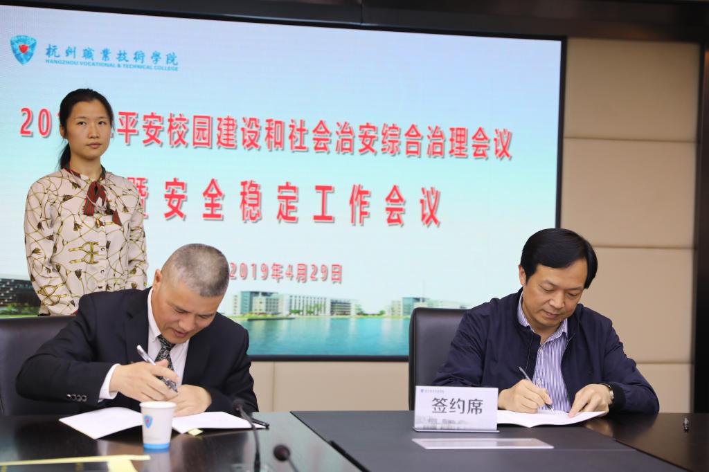 会上,校党委书记金波代表学校与部分二级学院、部门负责人代表签订了《杭州职业技术学院2019年度社会管理综合治理目标管理责任书》。