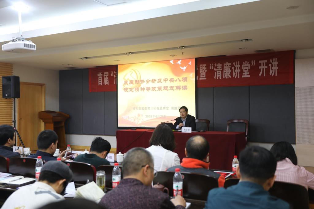 随后,黄胜贤作以“反腐形势分析及中央八项规定精神等政策规定解读”为主题的讲座,开启杭州职业技术学院“清廉讲堂”第一讲。