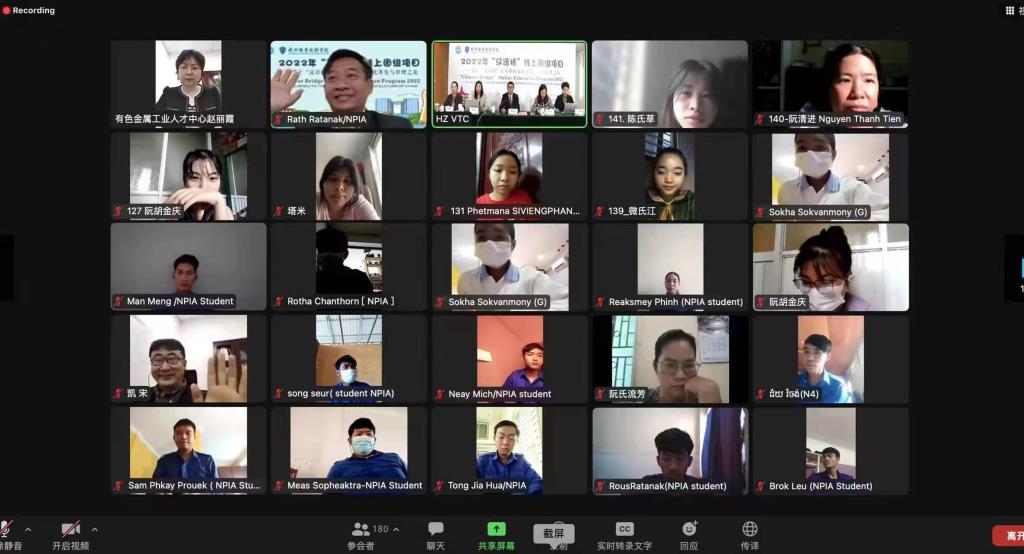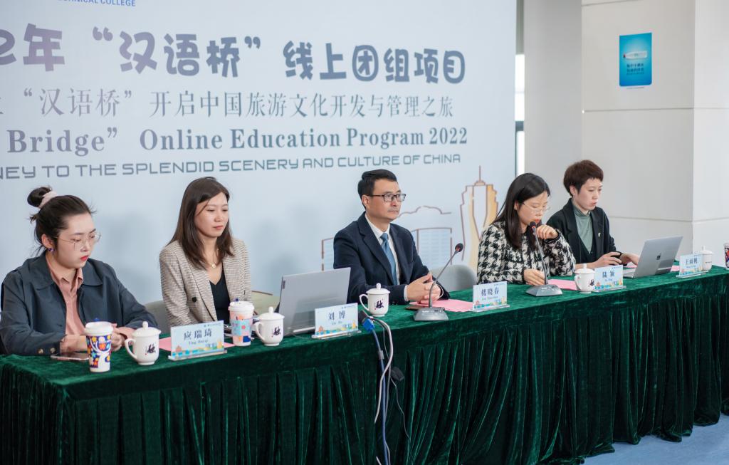 3月4日,由教育部中外语言交流合作中心主办、杭州职业技术学院承办的2022年“汉语桥”线上团组交流项目——踏上“汉语桥”开启中国旅游文化开发与管理之旅结业仪式在学校第七会议室隆重举行。有色金属工业人才中心培训处处长赵丽霞、我校副校长楼晓春以及来自柬埔寨、越南、孟加拉、老挝、缅甸、日本等国共计300余名营员相聚云端。
