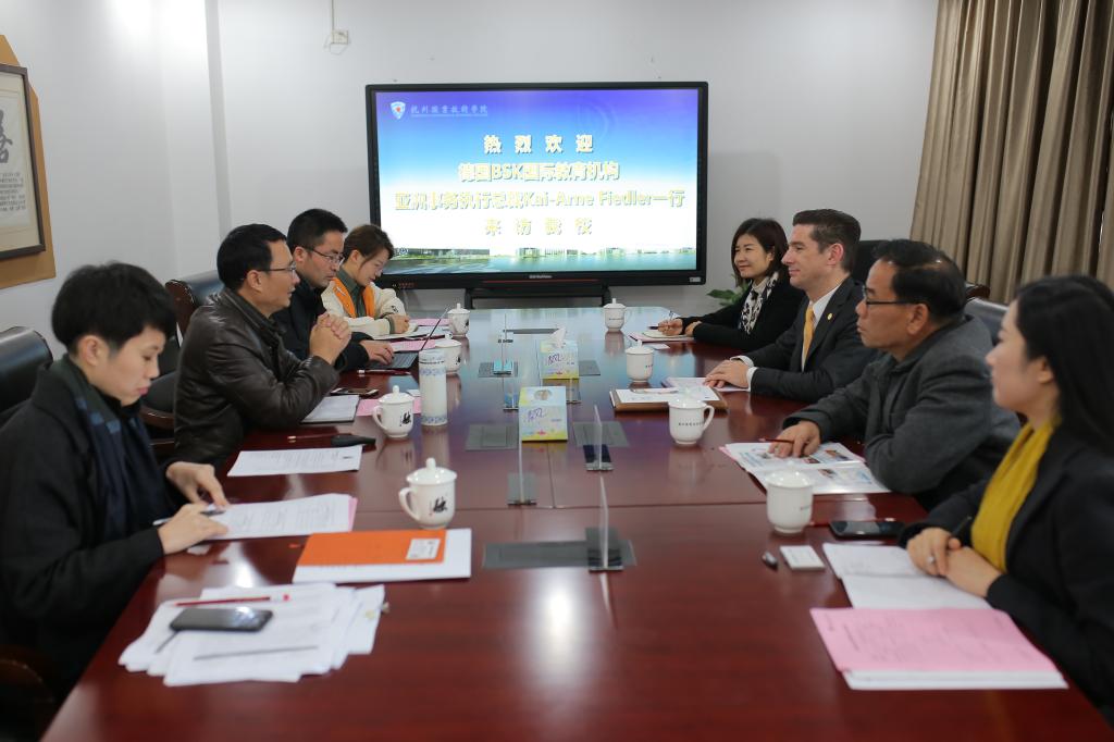 1月8日上午,德国BSK国际教育机构亚洲事务执行总裁凯尔.费德勒一行4人来访我校。副校长楼晓春,专业建设指导处、人事处、国际交流合作处相关人员参与接待。