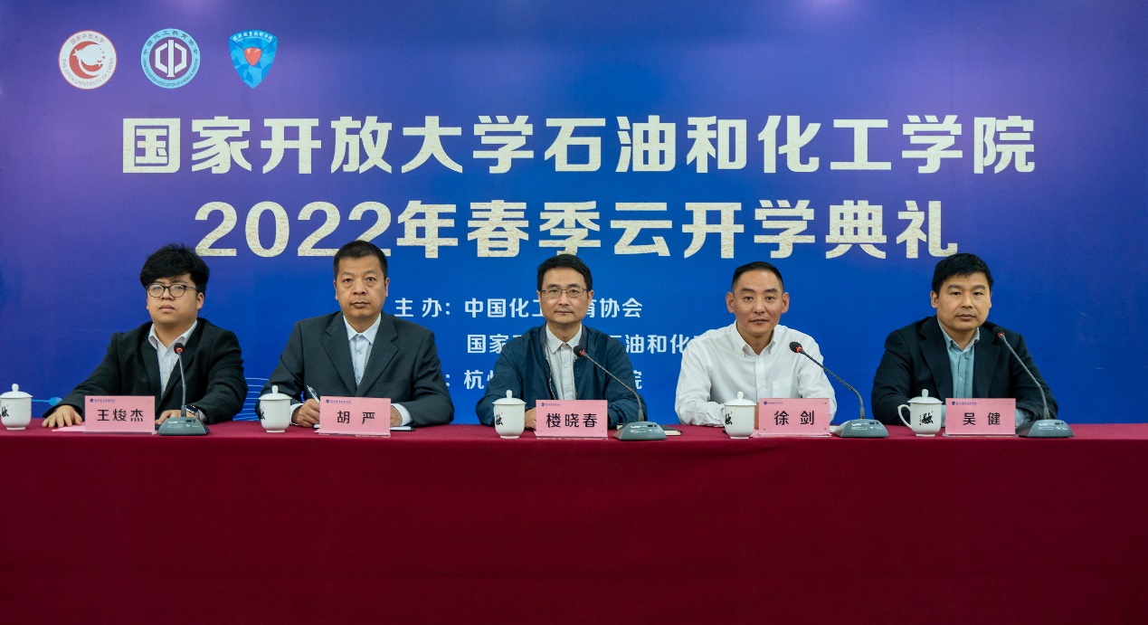 4月21日上午,由中国化工教育协会、国家开放大学石油和化工学院主办,我校承办的国家开放大学石油和化工学院2022年春季新生云开学典礼在行政楼121会议室隆重举行。中国化工教育协会驻会副会长、国家开放大学石油和化工学院副院长于红军、国家开放大学石油和化工学院副院长陈炳和、我校副校长楼晓春、生态健康学院党总支副书记胡严、以及课程辅导教师代表、新生代表出席典礼,线上近3000名新生观看了云开学典礼。典礼由继续教育学院院长徐剑主持。