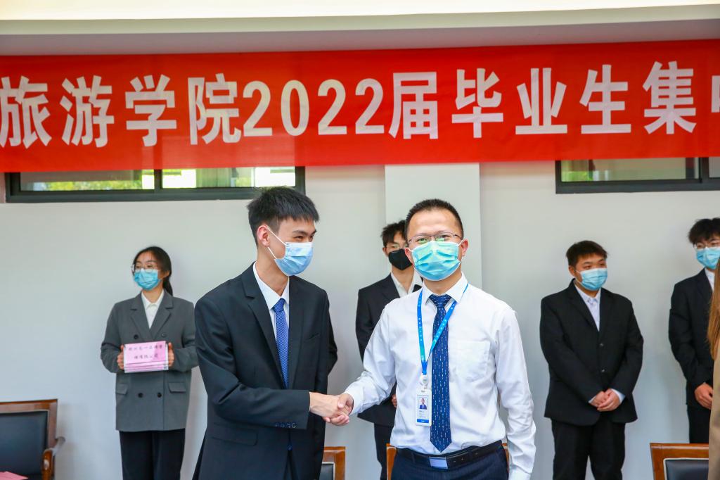 为应对“最难”就业季,深入贯彻落实党中央、国务院关于“六保”“六稳”决策部署,扎实推进访企拓岗促就业专项行动,全力做好2022届毕业生就业工作,最大限度地实现疫情背景下毕业生的充分就业、高质量就业。5月4日下午,商贸旅游学院在8318会议室举行毕业生集中签约仪式。万科物业服务有限公司战区代表处副总经理朱卫红、人力资源部负责人周强,融创物业服务集团有限公司杭州大区招聘负责人张悦,圣奥科技股份有限公司人力资源总监唐睿丽,顾家集团杭州分公司副总经理戎燕,杭州郝姆斯食品有限公司客服中心资源管理部负责人张琴,杭州为一品牌管理有限公司总经理曾瑞芳,杭州精彩财务咨询有限公司总经理黄欣欣,杭州振乡文旅发展有限公司副总经理赵海舟,学校党委书记金波,党政办、学工部、商贸旅游学院相关负责人,以及商贸旅游学院各专业负责人、学工办辅导员和20余名毕业生代表参加仪式。