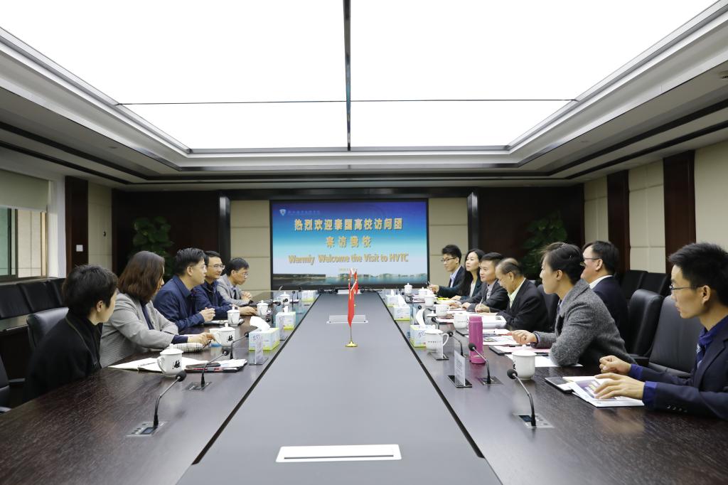 首先,来宾一行观看了学校宣传短片和南非留学生视频集锦。随后,贾文胜对杨金泉一行表示热烈欢迎,并从概说杭职、演绎杭职、精彩杭职、发展杭职等四个方面详细汇报了我校的办学理念、办学特色、办学成效和发展目标。随后,杨金泉介绍了泰国高等基本概况,并分别就格乐大学和博仁大学的专业、师资、学校建设等做了具体介绍。他对我校极具特色的跨界合作模式给予了高度赞赏,对我校鲜明的办学特色和成效给予了高度评价,对推进与我校的合作产生了浓厚的兴趣。