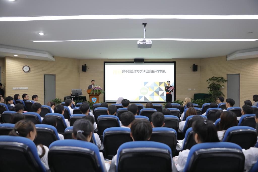 10月12日上午,我校与新西兰维特利亚理工学院合作办学项目新生开学典礼在动漫游戏学院4201视听讲堂隆重举行。新西兰维特利亚理工学院艺术学院院长Kaye、数字媒体专业负责人Brenda,我校校长贾文胜、副校长陈加明、国际交流合作处、党委学工部、专业建设指导处、动漫游戏学院相关负责人,以及中新班77名新生共同参加典礼,陈加明主持典礼。