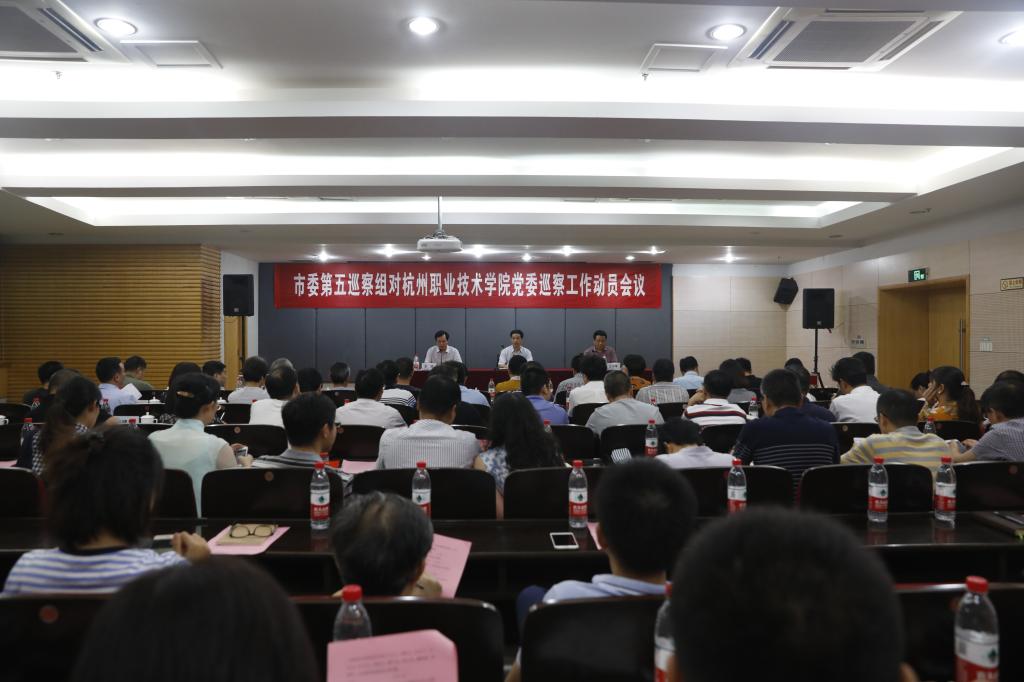 根据市委统一部署,9月11日下午,市委第五巡察组对杭州职业技术学院党委巡察工作动员会议召开。市委第五巡察组组长江小华就即将开展的巡察工作作了动员讲话,市委巡察工作办公室主任胡飞龙就配合做好巡察工作提出要求,杭州职业技术学院党委书记金波主持会议并作表态发言。