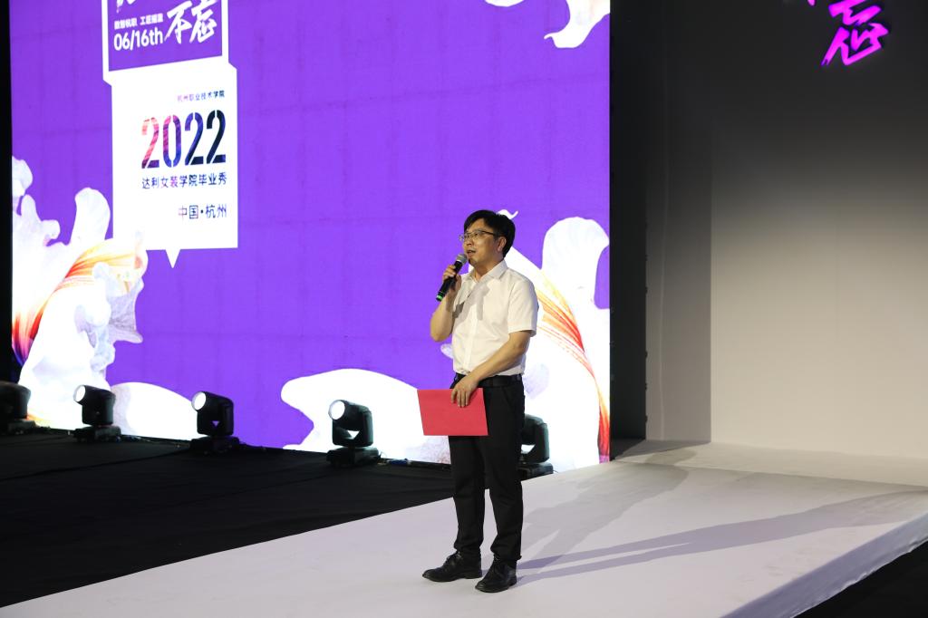 杭州职业技术学院校长徐时清代表学校致欢迎词。杭州市经信局党组成员、二级巡视员杨荣欣宣布“念廿不忘”——达利女装学院2022届毕业作品秀毕业作品秀正式开始!