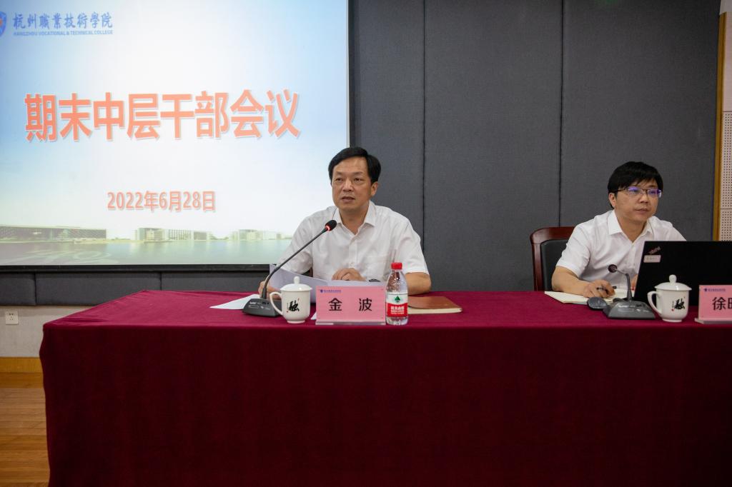 金波强调,2022年上半年学校保持了稳定发展、持续向好的态势,顺利完成了“双高计划”建设中期评价自评工作,各方面都取得了较大的进步和不错的成绩。针对暑期重点工作,他提出:一是统筹抓好学习调研,围绕“校园整体智治”“教育评价改革”“专业集群发展”“服务地方发展”等专题做好调研分析;二是加快推进校庆筹备工作,加强校院两级联动,认真落实筹备各项任务;三是有序开展暑期各类教育培训和社会实践活动;四是扎实做好招生就业工作,高质量完成2022级新生招录和2022届毕业生就业工作;五是不断强化后勤服务保障,安全推进校园基础设施改造提升工程,严把质量关、安全关;六是持续做好常态化疫情防控,密切掌握师生假期动态,确保校园安全稳定。他强调,全体中层干部要切实发挥好引领作用、示范作用、带头作用,带领全校教职工进一步凝心聚力、振奋精神、实干履职,共同努力有序推进暑期各项工作任务,为下学期学校工作的高质量开局做好准备。