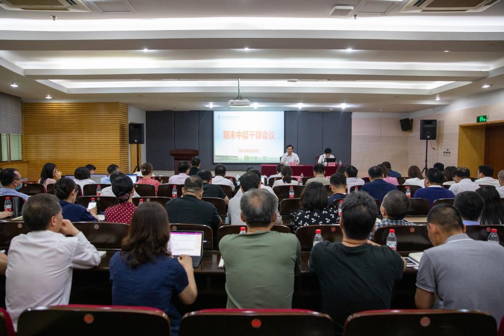6月28日上午,我校在行政楼117会议室召开了2022年春季学期期末中层干部会议。学校党政班子成员、全体中层干部参加会议。校长徐时清主持会议。
