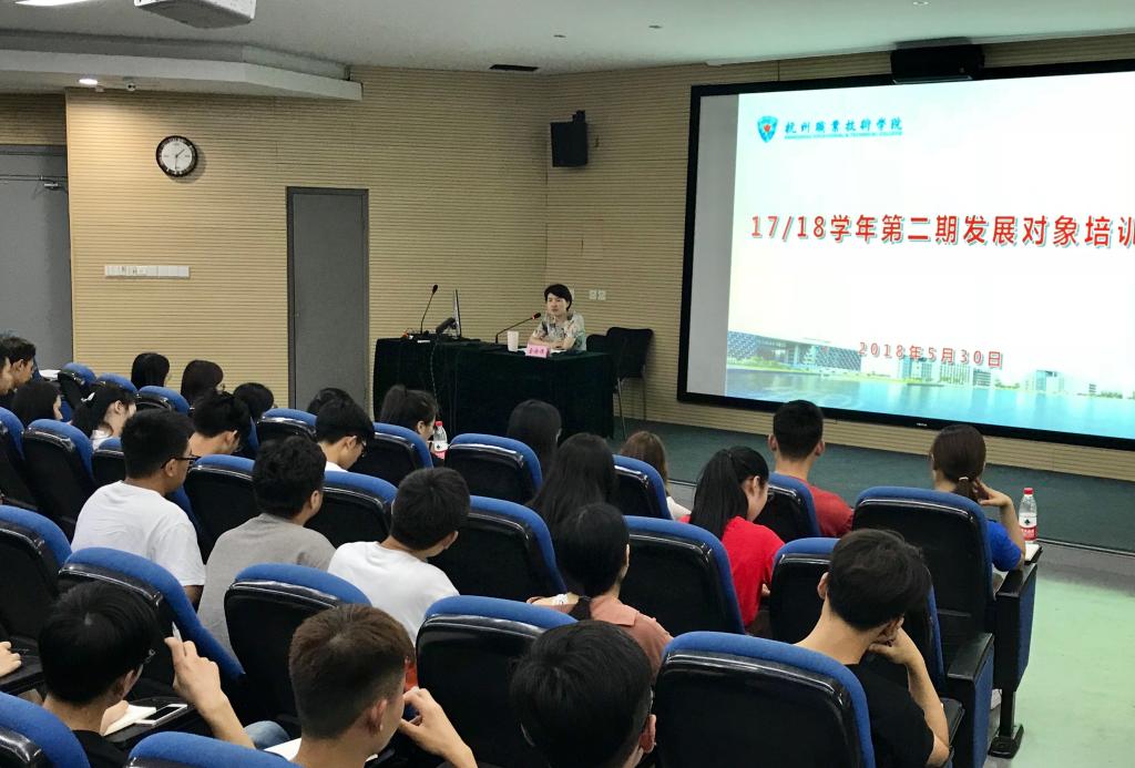 在5月23日的开班仪式上,校党委书记金波为参训学员上第一课。他在讲课中向同学们提出三点希望:一要坚定理想信念。他从学理的角度为学员们系统分析了中国的社会主义事业必将取得最终的胜利,为学员们讲解了中国特色社会主义进入新时代的深刻内涵和重大意义,希望学员们坚定理想信念,明确奋斗目标,在日常学习生活中积极践行“杭职院师生心目中的党员形象八条”。二要严格要求自己。他希望入党积极分子要不断端正入党动机,按党员标准严格要求自己,努力在学习、实践中不断锤炼自己,以实际行动争取早日入党。三要积极发挥作用。入党积极分子要勇于做广大学生的表率和榜样,要在学习和实践中发挥先锋模范作用,积极参与各类社会实践服务,在专业学习、社会实践、志愿服务、实训实习等工作中展示优秀精神风貌。要积极参与党组织工作、认真做好团学工作,努力助推学风建设,当好师生和校生的沟通桥梁。