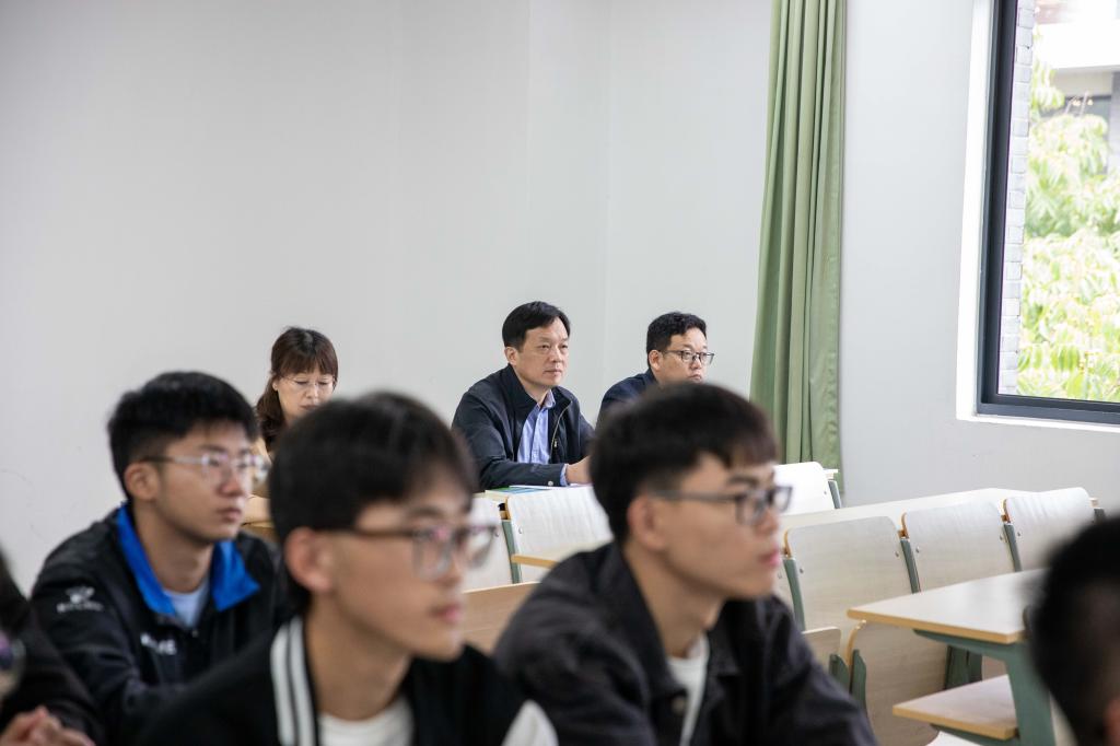 该课程是新生军训后开启大学生涯所学习的第一堂理论课,金波在课堂上凝神专注,认真记录教师的授课内容、教学方法,关注学生听课情况。课后,金波与任课教师亲切交谈,肯定了教师的精心备课和师生间的良好互动,并就加强教学设计、提升思政课程吸引力等问题与任课教师进行交流。金波提出,思政课是落实立德树人根本任务的关键课程,思政课要把问题讲透,为学生答疑解惑,对学生进行正确的价值观引导。