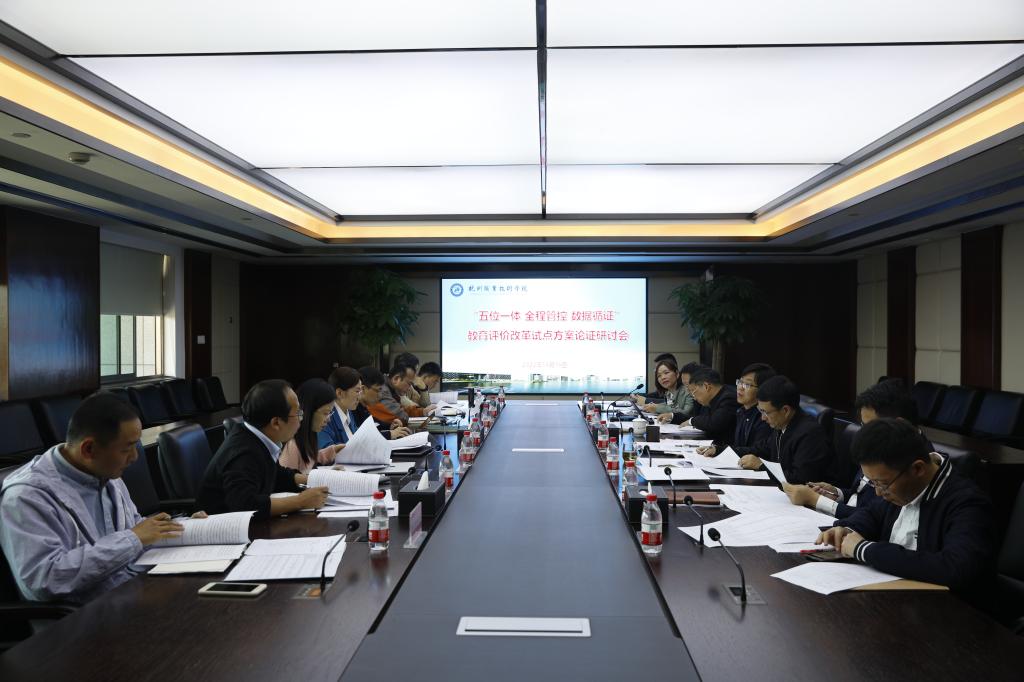 质量监控与评估处处长戴凤微主持会议并作了主题发言,对党中央、国务院《深化新时代教育评价改革总体方案》《浙江省深化新时代教育评价改革实施方案》等重要文件进行了解读,就近年学校在教育评价改革方面的成效进行了总结梳理,重点解读了学校《五位一体、全程管控、数据循证的教育评价改革方案》,就“主要目标任务、责任单位、现有主要举措及成效、按时间进度的预期做法及成效”以及改革的重点难点等作了说明。各部门负责人立足彰显职业教育类型特色、围绕学校改革方案、重点任务清单、实施进度计划等展开了深入研讨,为优化方案提供了建设性意见。