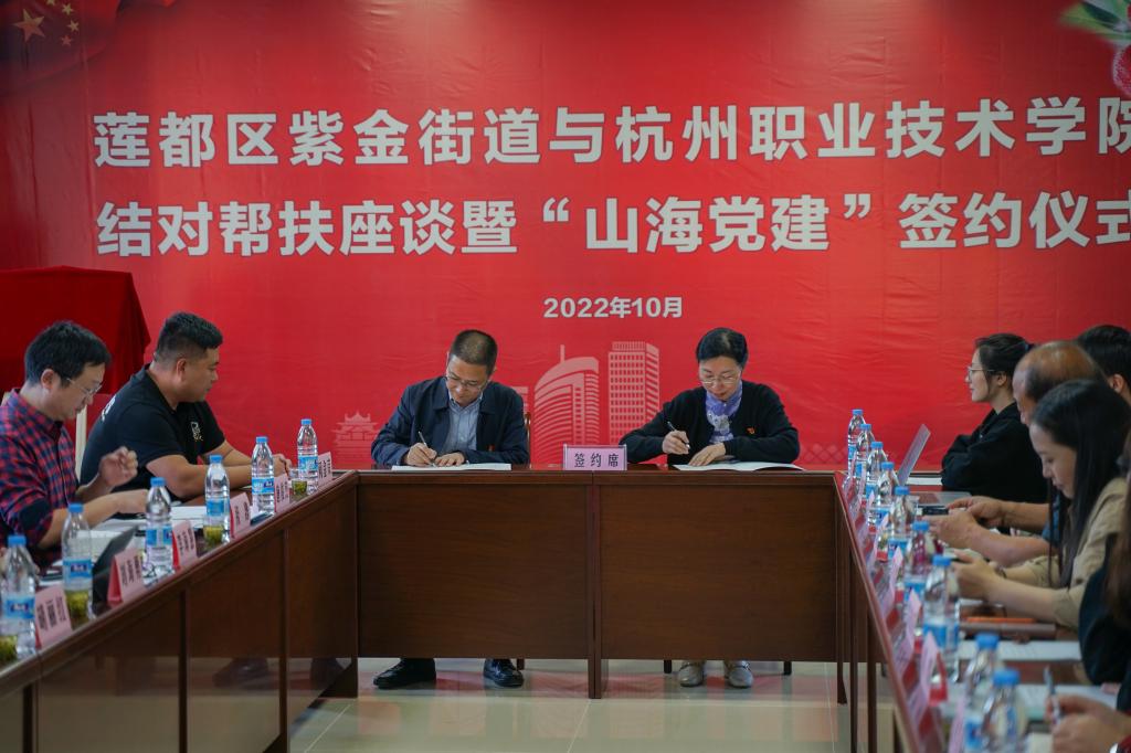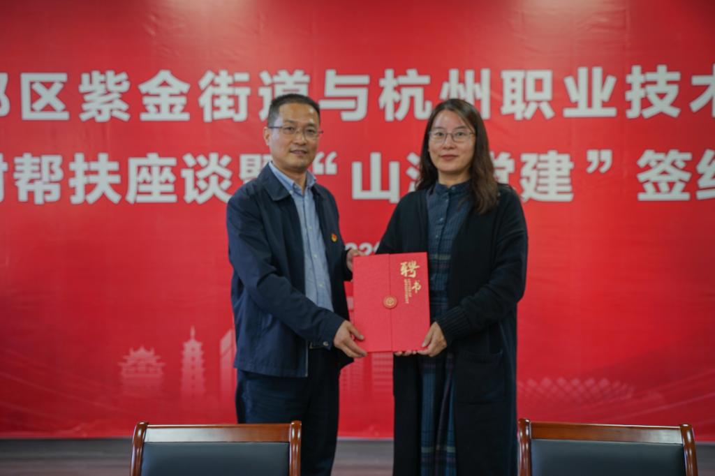 座谈中,双方进行深入交流,探讨合作共建的内在动力和发展活力,构建“资源共享、优势互补、互相促进、共同提高”的工作新格局,推动共同富裕迈上新台阶。随后,双方签署“山海党建”协议和人才招引协议,颁发兴村治社名师聘书,同时还为杭州职业技术学院创意农业实训基地揭牌。