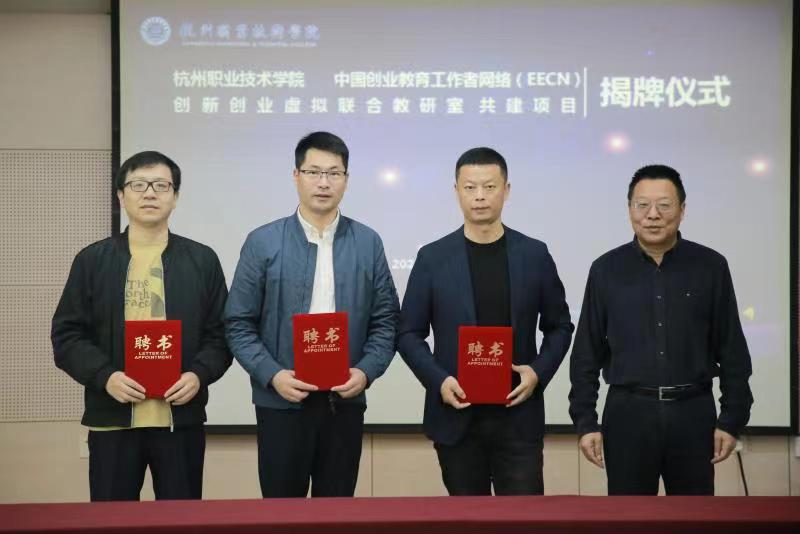 10月14日,我校与中国创业教育工作者网络(EECN)共建创新创业虚拟联合教研室揭牌仪式在行政楼121会议室举办。中国创业教育工作者网络(EECN)秘书长朱燕空,浙江省教育发展中心天风教育培训部经理万文博,全国财经院校创新创业联盟副秘书长,浙江旅游职业学院徐霞客创业学院院长沈鑫泉,我校党委副书记陈泉淼,人事处、学工部、团委、创业学院有关负责人,创新创业专兼职教师和学生代表参加活动。