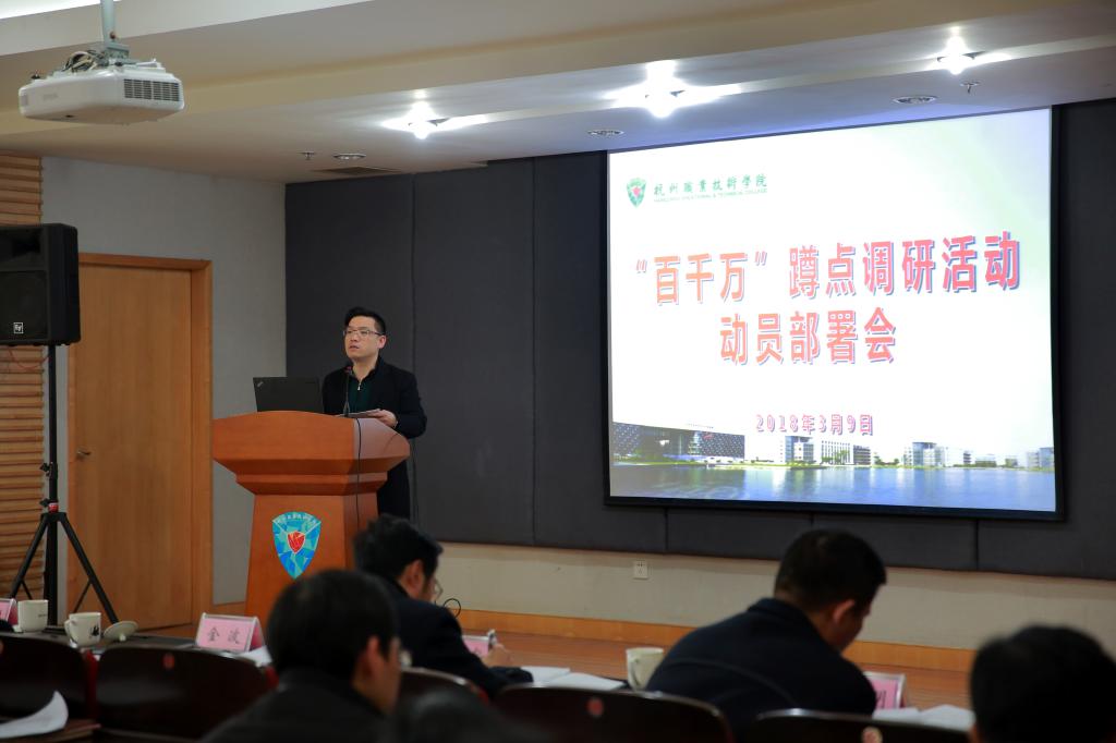党委委员、组织部长金徐伟向大家解读了我校开展“百千万”活动集中蹲点调研工作的方案及具体安排,介绍了联系点临安区板桥镇的情况。
