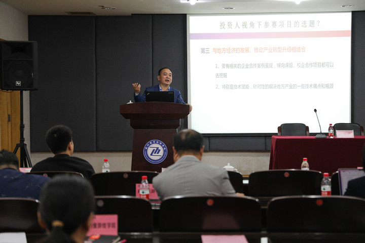 会议邀请中国国际“互联网+”大学生创新创业大赛专家委员会委员、国赛评委刘祖宏作了题为“中国互联网+大学生创新创业大赛精讲-投资人视角下项目选题与商业价值的挖掘”的报告。报告会中,刘祖宏老师围绕优质项目基因进行了深入浅出的分析,对创新创业项目遴选进行了深度解读,案例详实,信息丰富,对挖掘好项目、打磨“优质项目有非常重要的指导意义。