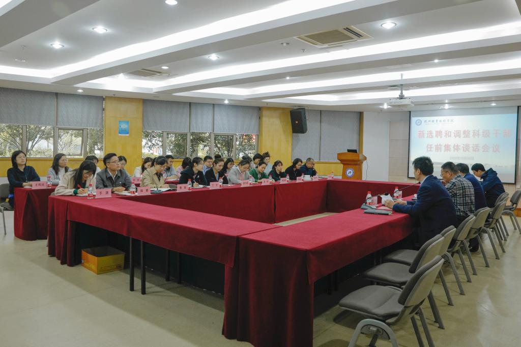 10月26日,我校举行新选聘和调整科级干部任职集体谈话会议。校党委副书记陈泉淼,校党委委员、纪委书记高云飞及新选聘和调整的21名科级干部参加会议。会议由党委委员、组织部部长麻朝晖主持。