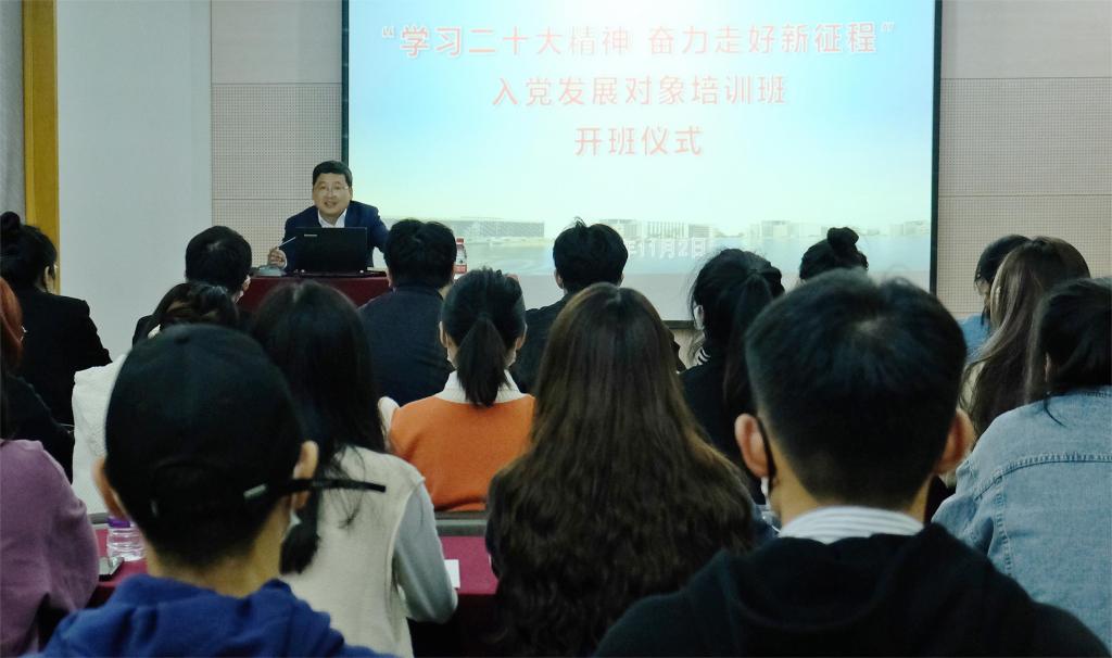 为深入学习宣传贯彻党的二十大精神,教育引导党员发展对象坚定理想信念、端正入党动机,树立共产主义远大理想,11月2日至11月5日,学校党校举办2022/2023学年第一期党员发展对象培训班,42名党员发展对象参加培训。