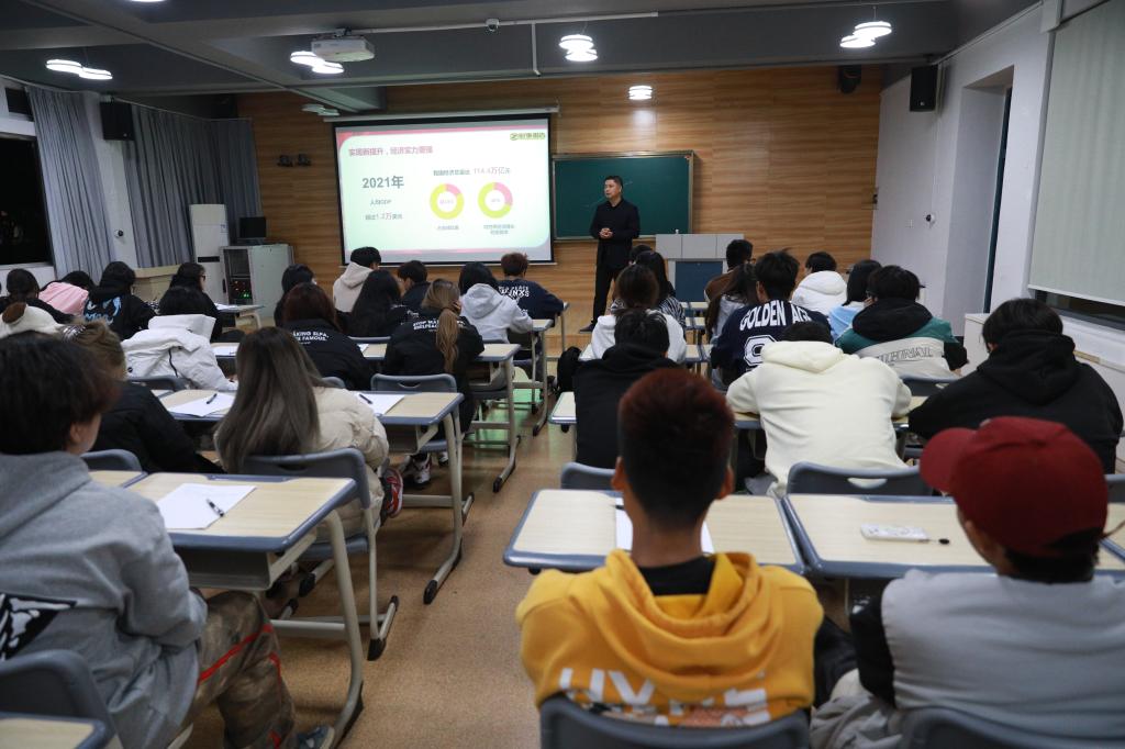 为进一步加强学生爱国爱党情怀,教育引导广大学生深刻认识在以习近平同志为核心的党中央坚强领导下新时代10年的伟大变革,深刻把握当前国际国内形势,深化认识新时代坚持和发展中国特色社会主义的重大理论和实践问题。11月14日晚,党委委员、副校长程利群在吉利汽车学院2318教室以《伟大时代的历史跨越》为题,开讲了本学期专题思政课。