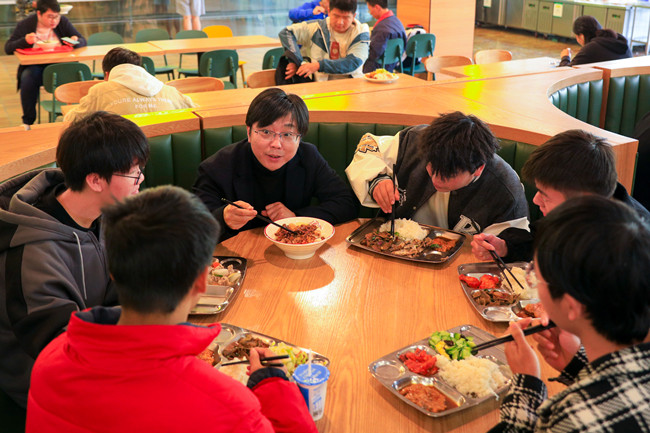 “饭菜合不合口味?营养跟不跟得上?”“菜价合不合适?”“在日常学习生活上有什么困难?”用餐时,徐时清与同学们围桌而坐,边吃边聊,不时关切地询问同学们对食堂餐饮的意见以及学习生活情况,并为同学们勤奋学习的劲头、充实的大学生活点赞。