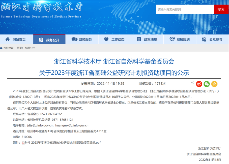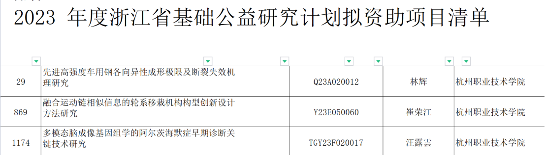 近日,浙江省科学技术厅、浙江省自然科学基金委员会发布了关于2023年度浙江省基础公益研究计划拟资助项目的立项公示,我校共立项3项。