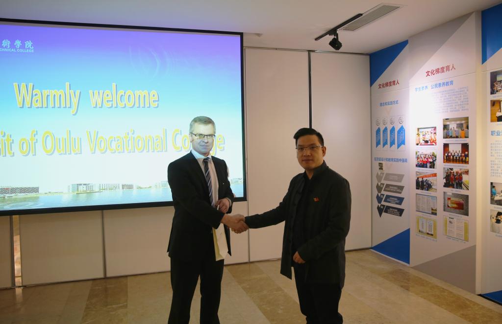 为进一步拓展我校国际化合作办学的发展空间,更好地学习先进的国际化教学理念,10月18日上午,奥卢职业技术学院校长Jarmo Paloniemi访问我校。我校校长贾文胜,以及国际交流合作处负责人参与接待。