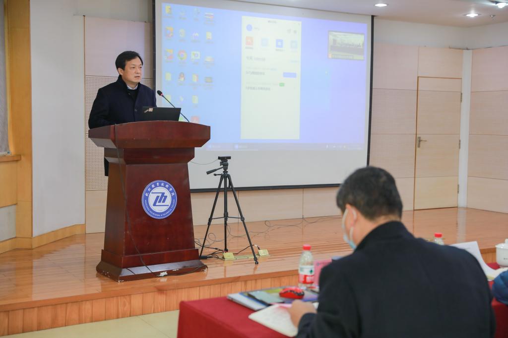 王博以视频连线方式作了题为《转变思路全体动员精益求精》的报告。他从背景分析、总体思路、材料体系、现场考察四个方面对职业本科学校申报准备工作进行全面系统地解读。既有理论分析、又有政策解读,内容丰富、重点突出、精准到位,对我校下一步做好“升本创大”筹备工作具有很强的指导意义。