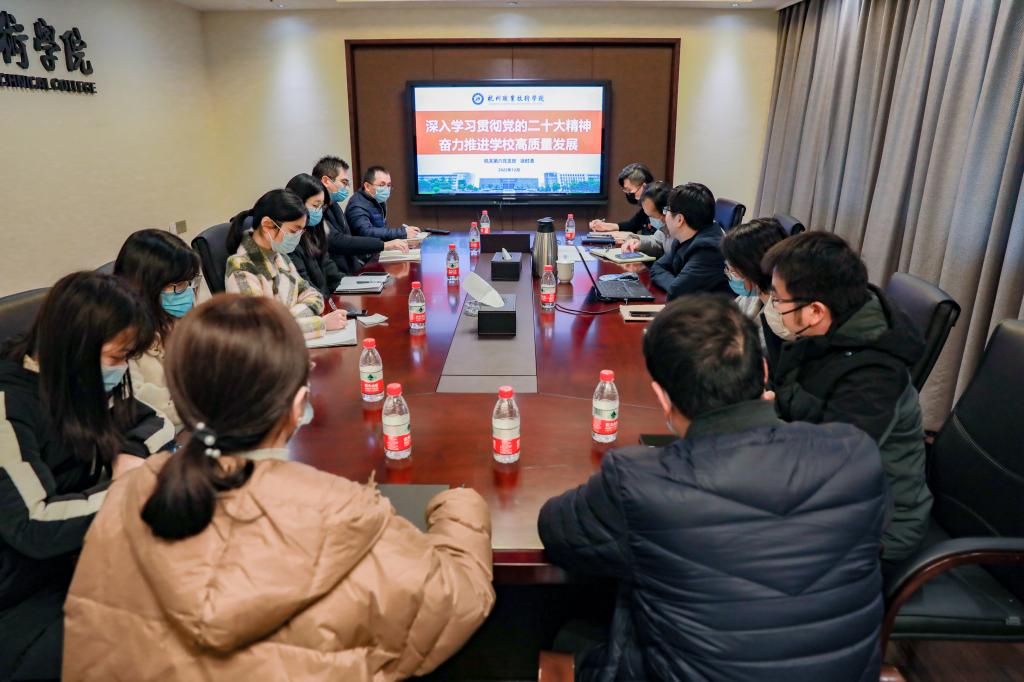 徐时清指出,当前学校的重点工作是高质量推进“双高”建设、加快推进本科层次职业教育,党员同志应以更加昂扬的精神面貌投入到学校建设的各项任务上来。人事处、财务处对照二十大报告中关于科技、教育、人才的统筹部署,进一步提高业务和服务水平,为学校高质量发展提供更加坚实的保障。