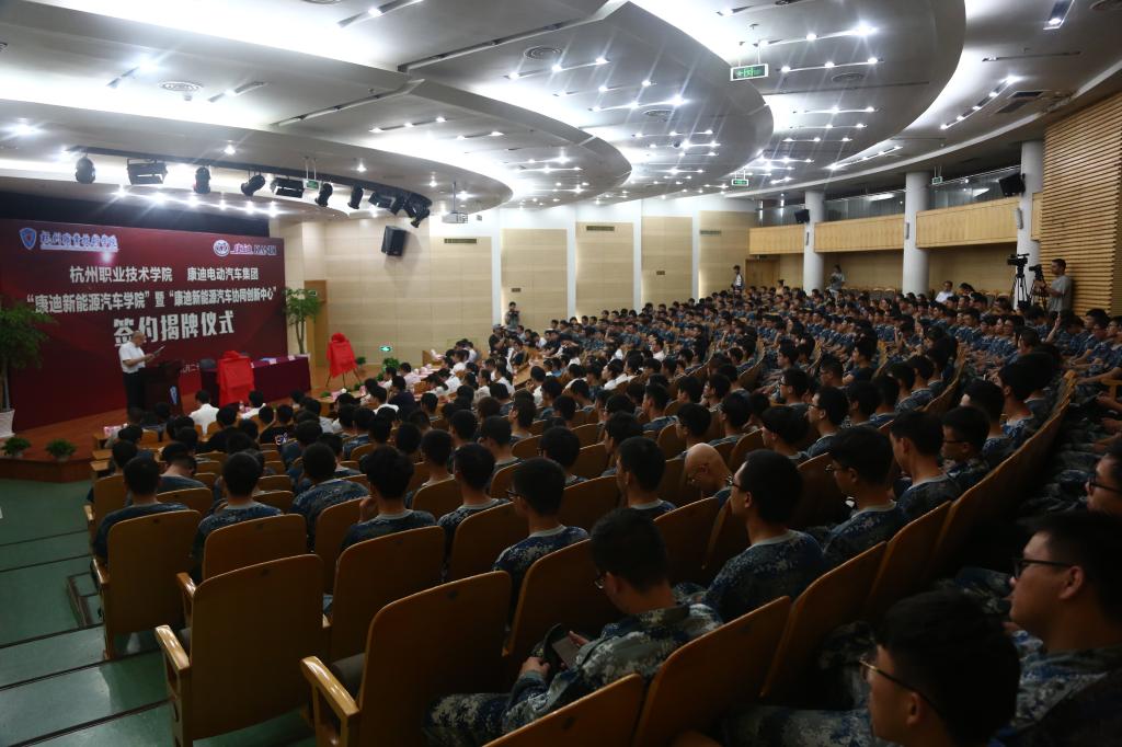 胡晓明在致辞中表示,康迪电动汽车集团正沿着“四化”——电动化、智能化、网联化、共享化四大方向发展,引领着汽车的变革,代表着新能源汽车新的发展趋势。此次与杭州职业技术学院的合作,是一个新的起点,希望能借此机会,为全国新能源汽车行业人才培养出力,向社会输送出更多的新能源汽车人才,更好地推动新能源汽车行业的发展。