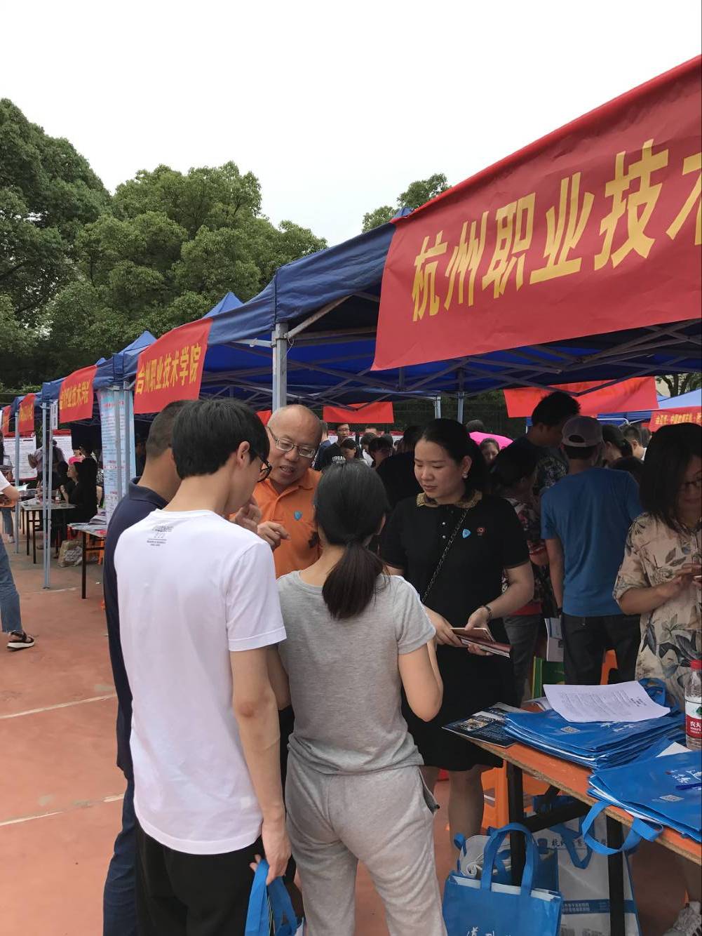 七月,全省各地高温酷暑,挡不住考生的热情,各咨询点人山人海,现场火爆,全体咨询老师更是激情火热、信心十足,耐心的解答每一位来咨询的考生,展现了杭职院良好的精神风貌;今年学校特意印制了一批环保文件袋,方便考生存放咨询资料,“杭职蓝”成立咨询现场的一道靓丽的风景线。