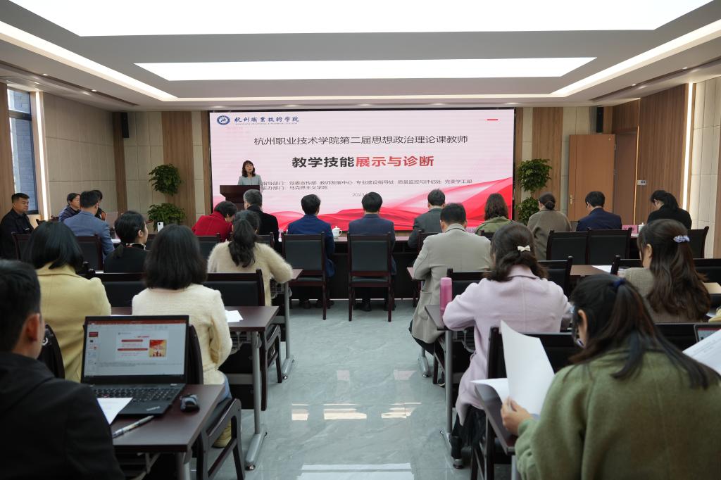 3月6日下午,学校第二届思想政治理论课教师教学技能展示与诊断活动在明德讲堂举行。此次活动由学校党委宣传部、质量监控与评估处、教师发展中心、教务处、党委学工部联合指导,马克思主义学院主办。学校党委书记金波出席活动并致辞,指导部门负责人出席活动并担任评委。活动特邀浙江财经大学马克思主义学院院长贺武华、杭州电子科技大学马克思主义学院院长王海稳、浙江经济职业技术学院马克思主义学院院长梁丽华担任评审专家,现场诊断指导。马克思主义学院院长邹宏秋、副院长王志强分环节合作主持活动,全体思政课教师参加活动现场观摩。