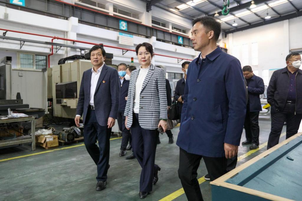 王新春一行依次参观了友嘉智能制造学院、特种设备学院电梯实训中心和华为云计算学院展厅。陪同调研期间,金波书记简要介绍了学校的办学情况、发展历史、办学特色和办学成效。相关分院负责人详细介绍了产教融合、校企合作的持续探索与生动实践,形象展示了实训室、应用技术协同创新中心、科普教育基地建设成效。