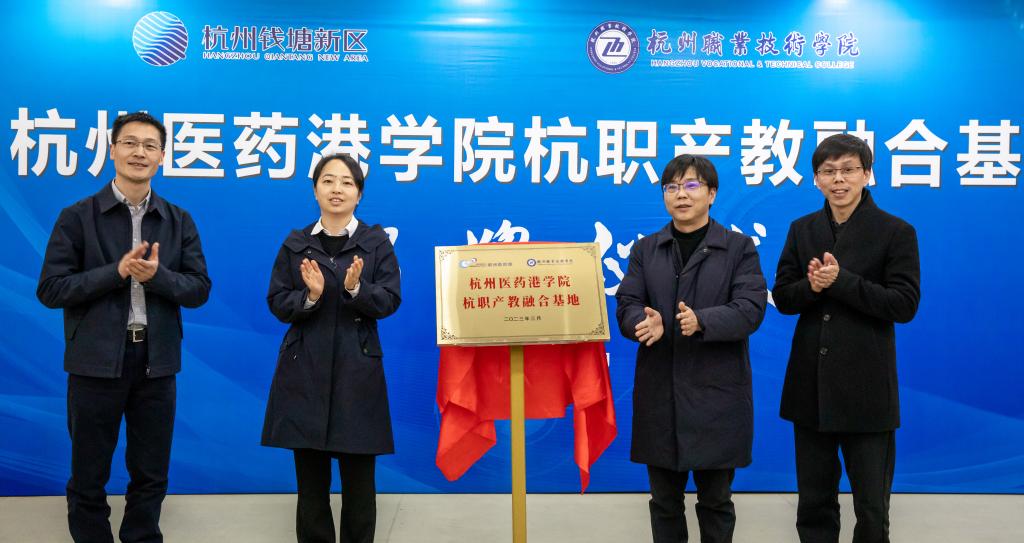 “杭州医药港学院杭职产教融合基地”的顺利揭牌,为我校探索实践区域产教融合共同体迈出了坚实的一步,下一阶段,合作多方将加快建设步伐,把校内2000平方米专属实训基地打造为生物制药全产业链的实训室、基于典型产品生产工艺的一流实训基地和创新实践基地,将产业新技术、新工艺、新模式、新标准转化为课程教学内容,努力为钱塘区培养优秀的生物制药类高素质技术技能人才,服务杭州医药港1000余家制药类企业,助力杭州医药产业高质量发展。