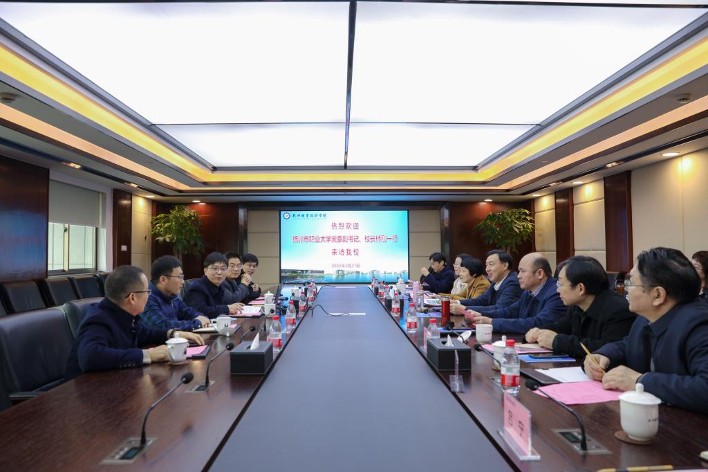 林刚对杭职院改革发展的成绩给予了充分肯定。双方围绕教学改革、人才培养、师资队伍建设、内部治理等工作进行了座谈交流。