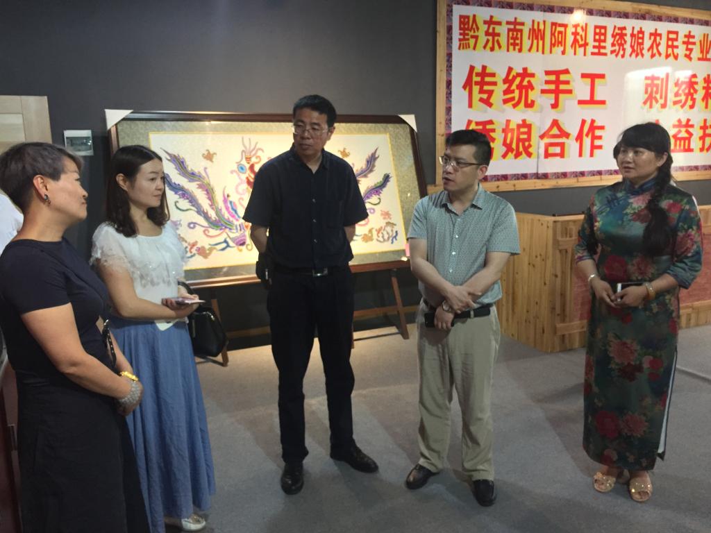 调研期间,贾文胜一行实地参观了各校的教学设施和实训基地,与学校主要领导就学校改革发展、现代学徒制人才培养等进行了沟通交流,重点考察了各校民族传统工艺场馆建设以及校企合作情况,并走访了黔东南州阿科里绣娘农民专业合作社、苗妹非遗博物馆等企业,实地考察调研蜡染、刺绣、银饰等地方传统民族工艺品的生产情况。