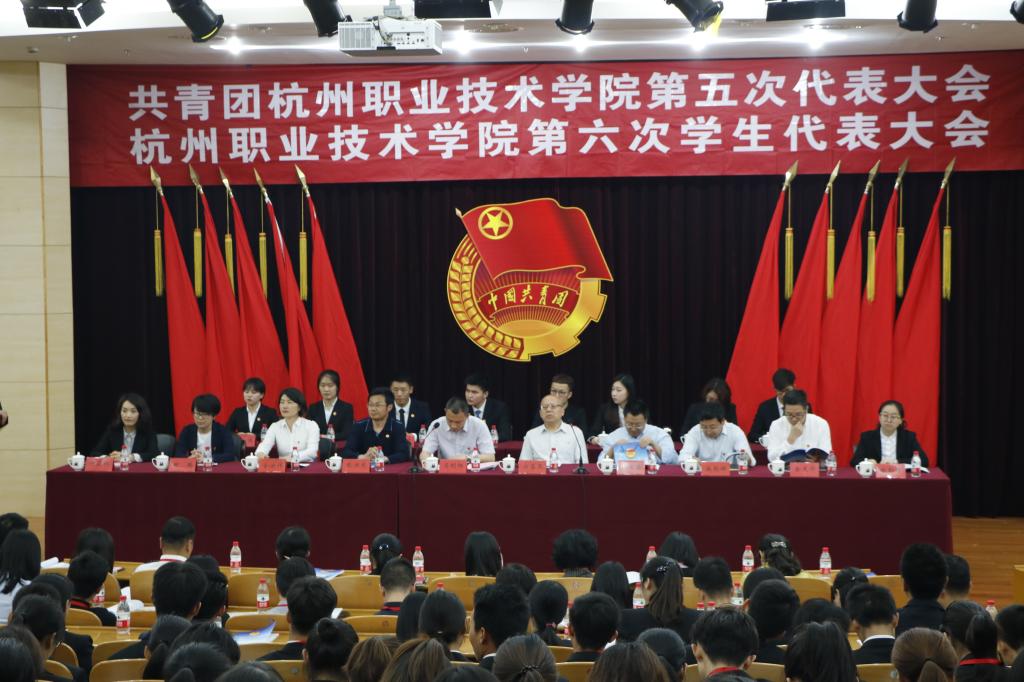 524日,共青团杭州职业技术学院第五次代表大会、杭州职业技术学院第六次学生代表大会在行政楼二楼报告厅隆重召开。共青团杭州市委副书记马利阳、杭州团市委学校部部长田臻、下沙经济技术开发区团工委副书记金灵华、杭州市学联驻会主席徐勤孝莅临本次大会。出席会议的还有我校党委书记安蓉泉、副校长张洪宪、纪委书记陈泉淼、党委委员金徐伟、党委委员麻朝晖、各党总支书记、职能部门负责人、老团干代表,以及282名团(学)代表。此外,杭州师范大学、浙江理工大学等16个兄弟单位的团委负责人、学生会主席到会祝贺。会议由第四届团委委员王璐瑜主持。