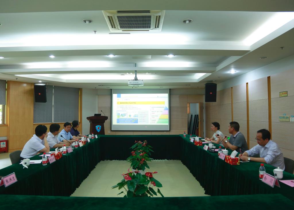 随后,来宾一行在第四会议室进行座谈交流。陈加明总结了我校近年来的发展情况,并重点介绍了我校的办学理念、办学实践和办学成果。刘磊认为我校的办学理念先进,办学成果丰硕,值得学习借鉴。