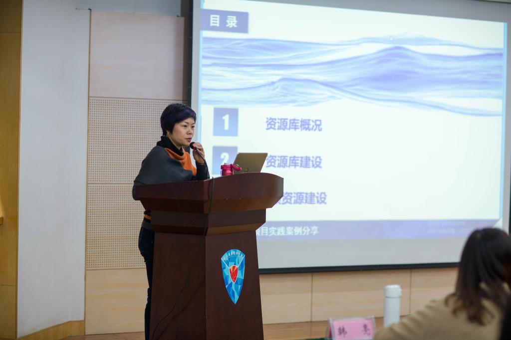 领航未来(北京)科技有限公司总裁姜涛作题为“互联网+资源库融入职教教学互动应用的启示与实践探索”的主题发言。我校副校长许淑燕介绍了非遗专业教学资源库项目建设基本情况。