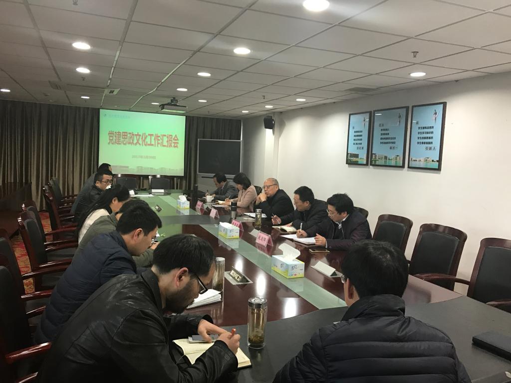 3月30日,我校在行政楼第一会议室召开党建思政文化工作汇报会,校党委书记安蓉泉,纪委书记陈泉淼,党委委员金徐伟、麻朝晖,以及党群、行政一、行政二、人文社科部党总支书记、支部书记参加了会议。