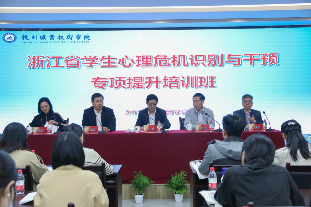 5月8日,浙江省教育厅、浙江省科学技术协会、浙江省精神卫生工作办公室指导,浙江省高校心理危机干预研究中心、浙江省心理卫生协会为主办,我校承办的浙江省心理危机识别与干预专项能力提升高校第二期培训班开班仪式在马克思主义学院明德讲堂举行。浙江省教育厅宣教统战处处长陈雷,浙江省心理卫生协会理事长赵国秋,浙江省高校心理危机干预研究中心执行主任傅素芬,浙江省精神卫生办公室主任徐松泉,我校党委委员、副校长程利群出席 。开班仪式由傅素芬主持,来自全省的42所高校心理中心主任或骨干专职心理教师参加此次培训。