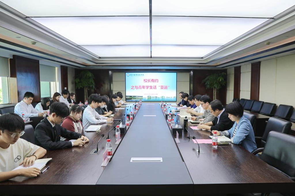 活动开始,18名学生代表交流对杭州召开亚运会以及参与亚运相关活动的认识和感悟,畅谈了各自作为亚(残)运预用志愿者、亚(残)运会开幕式大学生群演,从自身出发助力亚运会,体现新时代青年的担当和风采的想法。随后,各职能部门负责人从部门职责、积极做好服务保障和亚运会的意义、感受等方面进行互动交流。