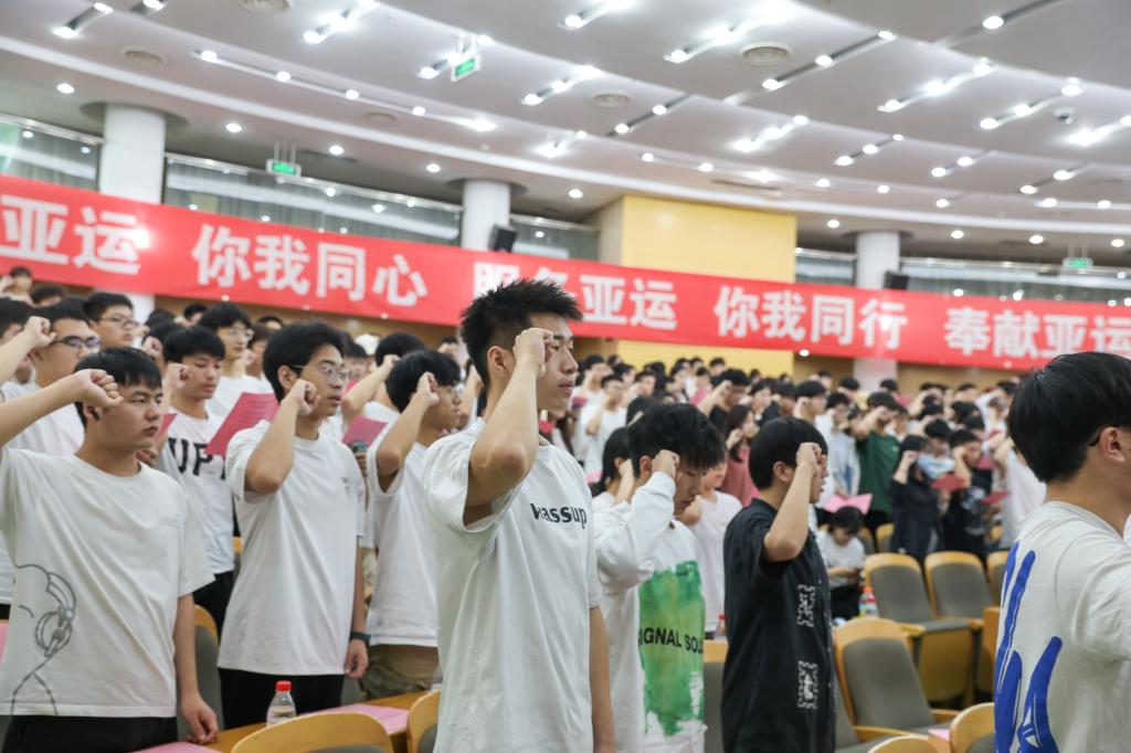 大会最后,全体参演同学庄严宣誓:要“牢记嘱托、担当使命,顾全大局、听从指挥,为我中华、服务亚运,爱我杭州、奉献亚运,全力以赴,展现杭职学子风采。”表达了服务保障亚运会中彰显新时代好青年的作为和形象,在奋斗中展现杭职学子的青春风采的决心。