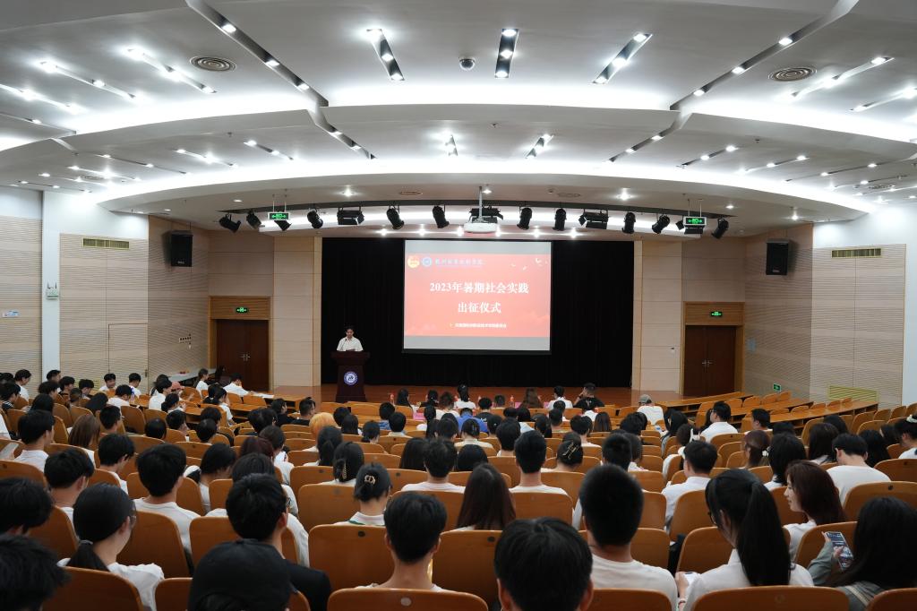 为深入学习宣传贯彻习近平新时代中国特色社会主义思想,全面贯彻落实党的二十大精神,切实发挥共青团在青年学子中的组织引领作用。6月26日下午,我校于行政楼二楼报告厅举行2023年共青团学习贯彻习近平新时代中国特色社会主义思想主题教育推进会暨暑期社会实践出征仪式。党委副书记陈泉淼,团委、二级学院团总支负责人、各实践团队指导老师及学生代表等200余人参加出征仪式。