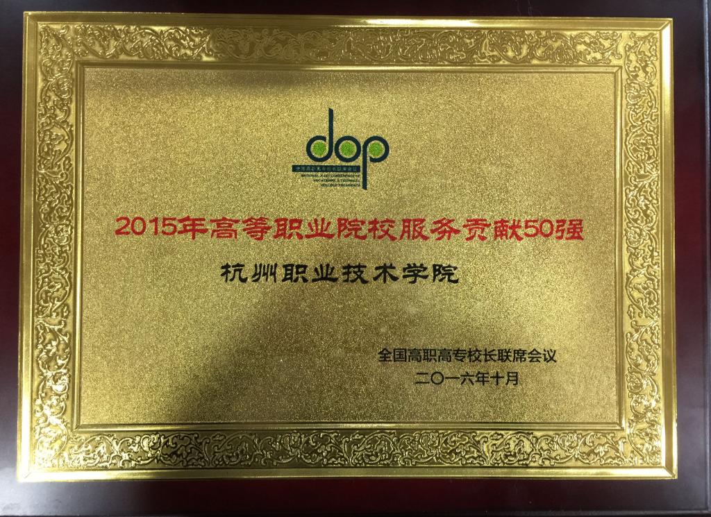 会上举行了全国“高等职业院校服务贡献50强”颁奖仪式。我校作为获奖单位上台领奖。