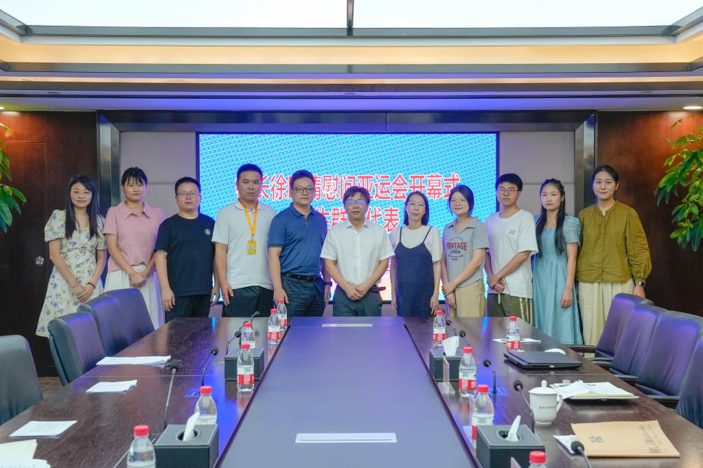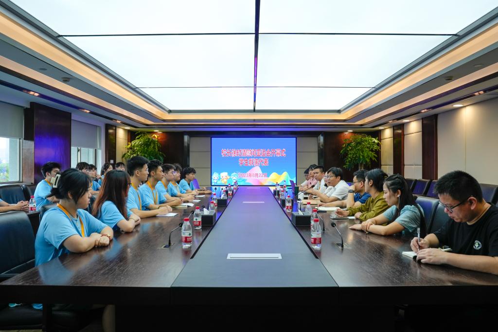 8月22日,校长徐时清在528会议室慰问我校服务杭州亚运会开闭幕式群演学生代表并送上慰问品,办公室、学工部等部门负责人陪同参与慰问。
