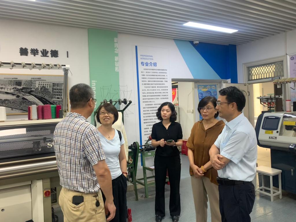 9月13日上午,中国针织工业协会副会长瞿静、市场部副主任高晚晴、濮院针织产业园区管委会副主任李夏洁、濮院镇文旅会展办主任廖陈霞、副主任钟昕烔一行人来访,我校副校长楼晓春、达利女装学院副院长刘桠楠、针织技术与针织服装专业负责人和骨干教师进行了热情接待。