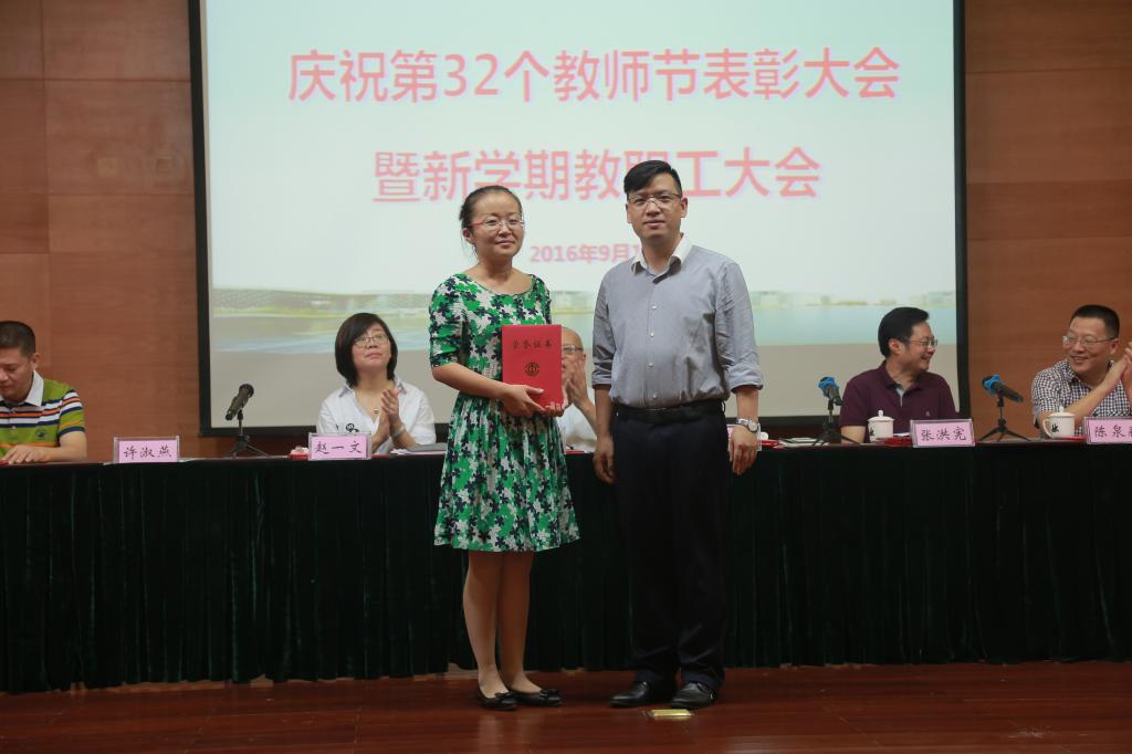 第一阶段是庆祝第32个教师节表彰大会,由副校长许淑燕主持。