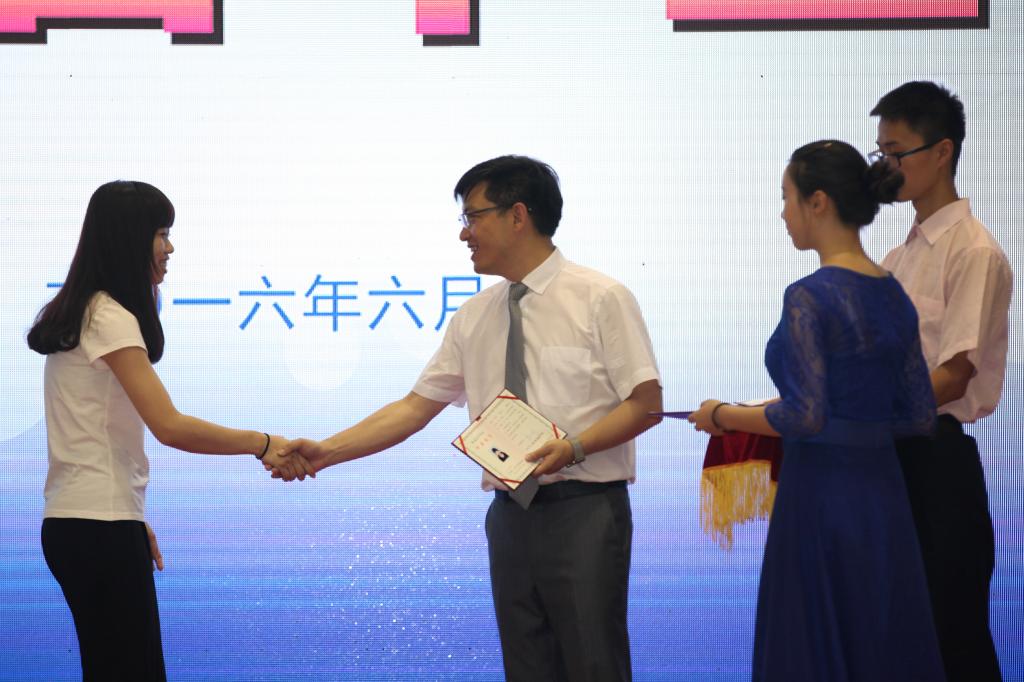 典礼在庄严而雄壮的国歌声中拉开了帷幕。贾文胜向即将告别母校、踏上新的人生征途的全体毕业生们,送上最衷心的祝贺和最美好的祝福!他对2016届毕业生三年来的成绩予以肯定,并结合学校“融”、“善”理念,与毕业生们分享四句话八个字:善学、善思、善行、善融。一是“善学”,他希望同学们抱定“终身学习”的理念,具有“不断充电”的紧迫感和行动,学会专业技能,学会沟通,学会适应岗位、适应环境、适应社会,才能处变不惊,不被社会淘汰;二是“善思”,做到两要:一要善于确立目标,结合自己所学专业、兴趣爱好和性格特点,做好自己的事业目标选择和职业生涯规划;二要善于反思总结,善于总结找规律,善于发展找问题,善于创新找方法,善于执着找成功;三是“善行”,以马云、朱志洋、王水福的成功经历,告诉同学们要善于行动,敢于实践,要行善如流,内心存善。在激烈的社会竞争中,要时刻守住“惟善”的底线,恪守职业道德,慎独、慎微、慎行;四是“善融”,作为过来人,他想给即将走上工作岗位的毕业生们两句忠告:一要转换角色,主动融入;二要融会贯通,学以致用。