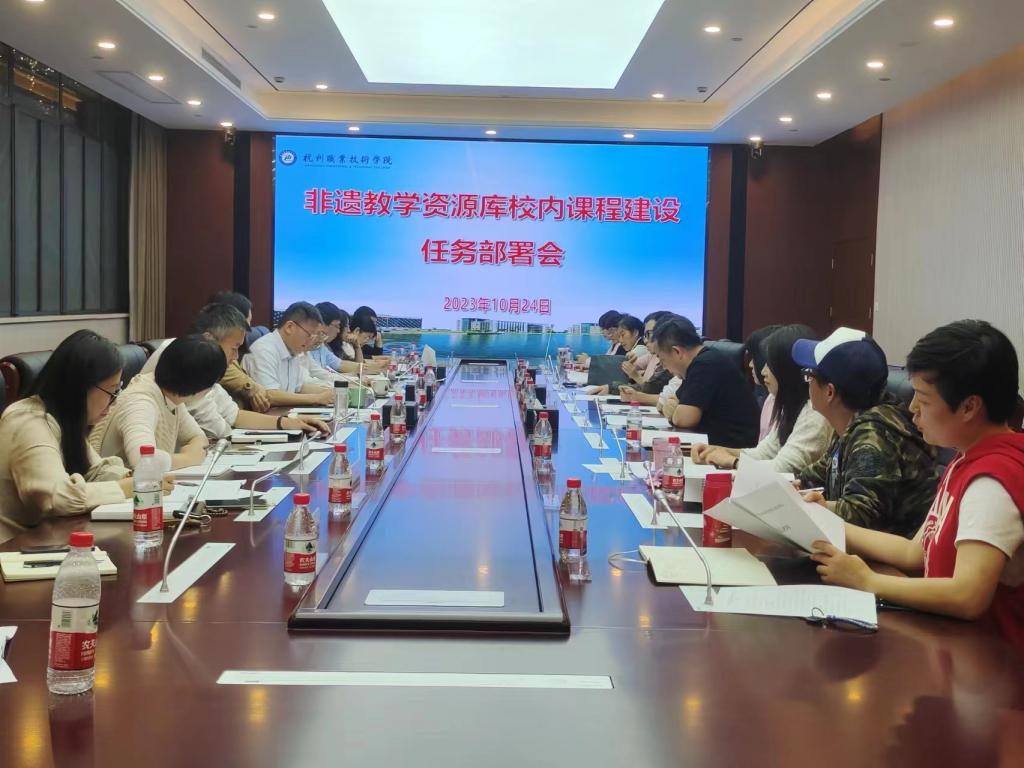 10月24日下午,非遗教学资源库校内课程建设任务部署会在行政楼129会议室召开。校党委书记陈文岳,副校长楼晓春,教务处负责人、非遗教学资源库建设专班负责人及成员、校内课程负责人、课程摄制方负责人等参加会议。